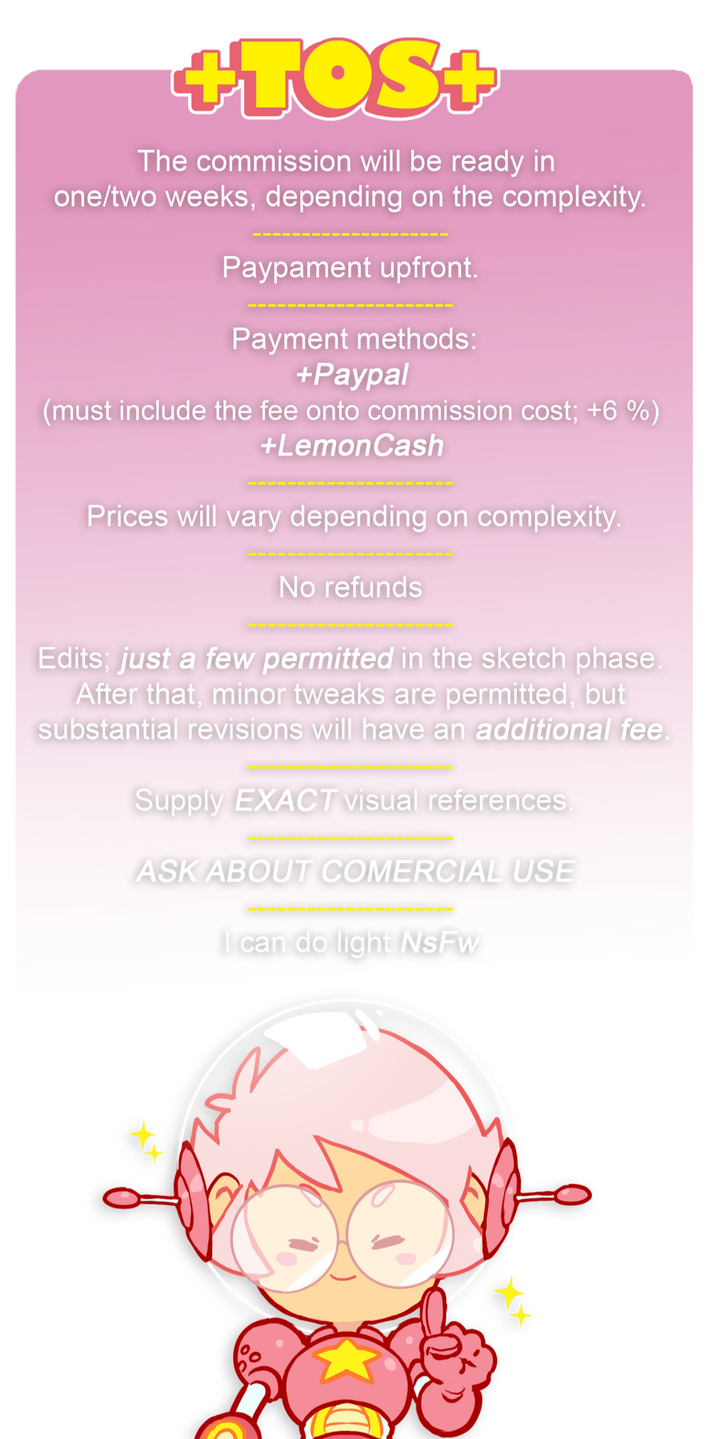 If you are interested in commish me, feel free to check my price list below.